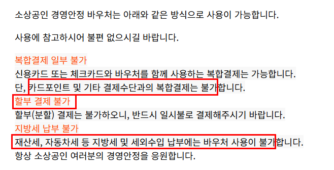 [주의] 소상공인 경영안정 바우처 사용처 제외 항목